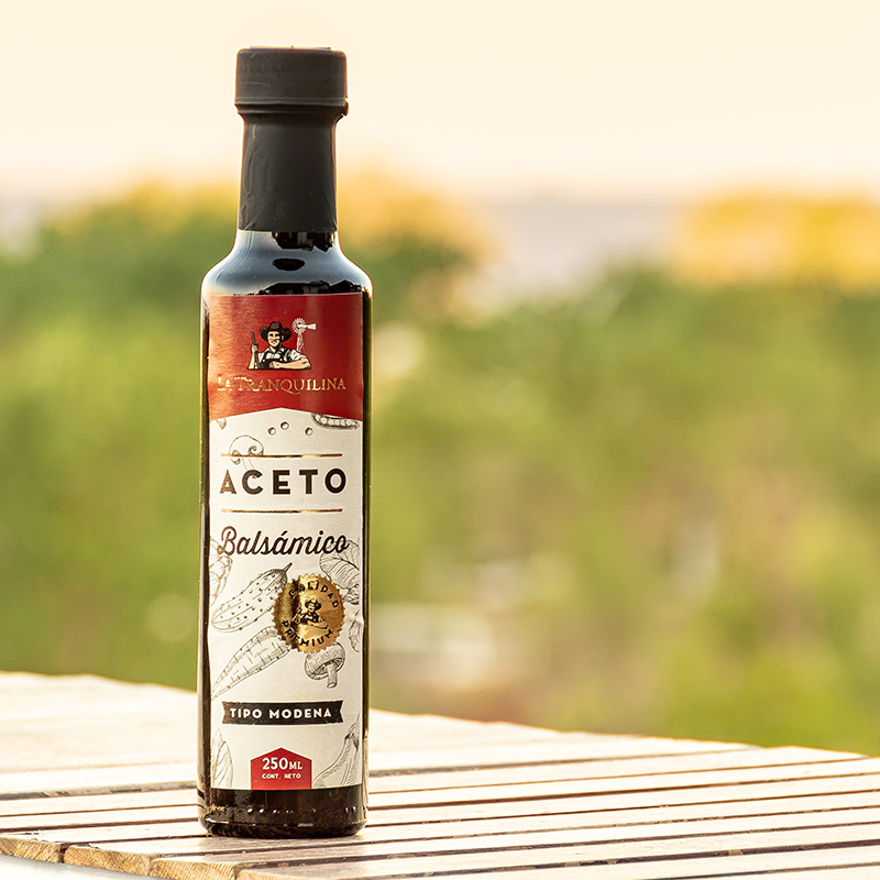 Aceto balsámico de sabor intenso y equilibrado, elaborado a partir de la fermentación natural del mosto de uva. Su textura suave y ligeramente dulce lo convierte en el complemento ideal para una amplia variedad de platos.